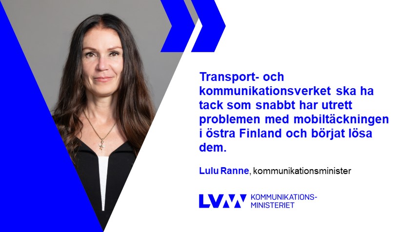 – Transport- och kommunikationsverket ska ha tack som snabbt har utrett problemen med mobiltäckningen i östra Finland och börjat lösa dem, säger kommunikationsminister Lulu Ranne.