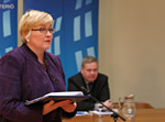 Kansliapäällikkö Harri Pursiainen luovutti toteuttamisohjelman liikenneministeri Anu Vehviläiselle 17. maaliskuuta.