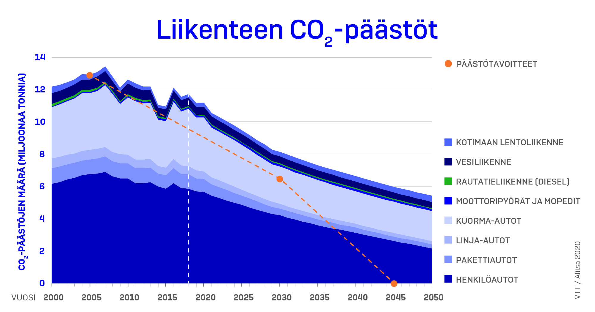 Liikenteen ilmastopäästöjen perusennuste on lähtökohta ilmastoelvytykselle ja matkalle kohti uusiutuvaa liikennettä.