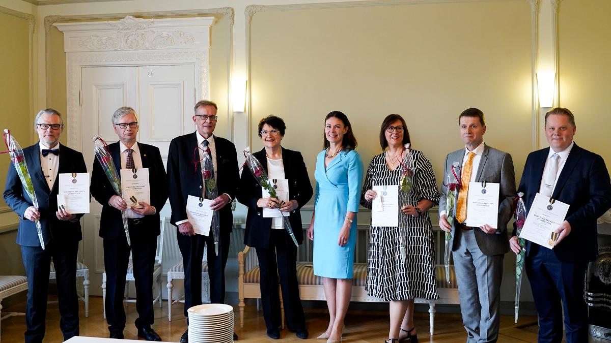 – Lämpimät onnittelut ja kiitokset työstä, joka tukee Suomelle kriittisen alan kehitystä. Suomi on kumipyörämaa nyt ja tulevaisuudessa. Kiitos, että olette mukana rakentamassa turvallista ja toimivaa kumipyöräliikenneympäristöä kaikille, ministeri Ranne onnitteli uusia ansiomitalisteja.