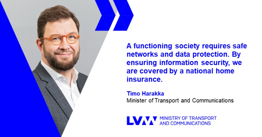 "A functioning society requires safe networks and data protection. By ensuring information security, we are covered by a national home insurance," says Minister of Transport and Communications Timo Harakka.