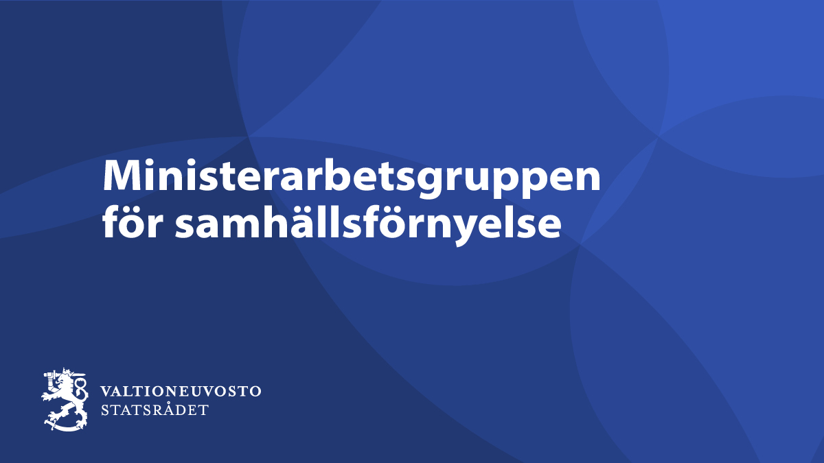 Ministerarbetsgruppen för samhällsförnyelse styr genomförandet av regeringsprogrammet när det gäller utnyttjande av digitalisering, robotteknik och artificiell intelligens brett över hela samhället och inom den offentliga förvaltningen. Ministerarbetsgruppen behandlar frågor som gäller utveckling av den offentliga förvaltningen, med undantag för reformen av social- och hälsovårdsförvaltningen.