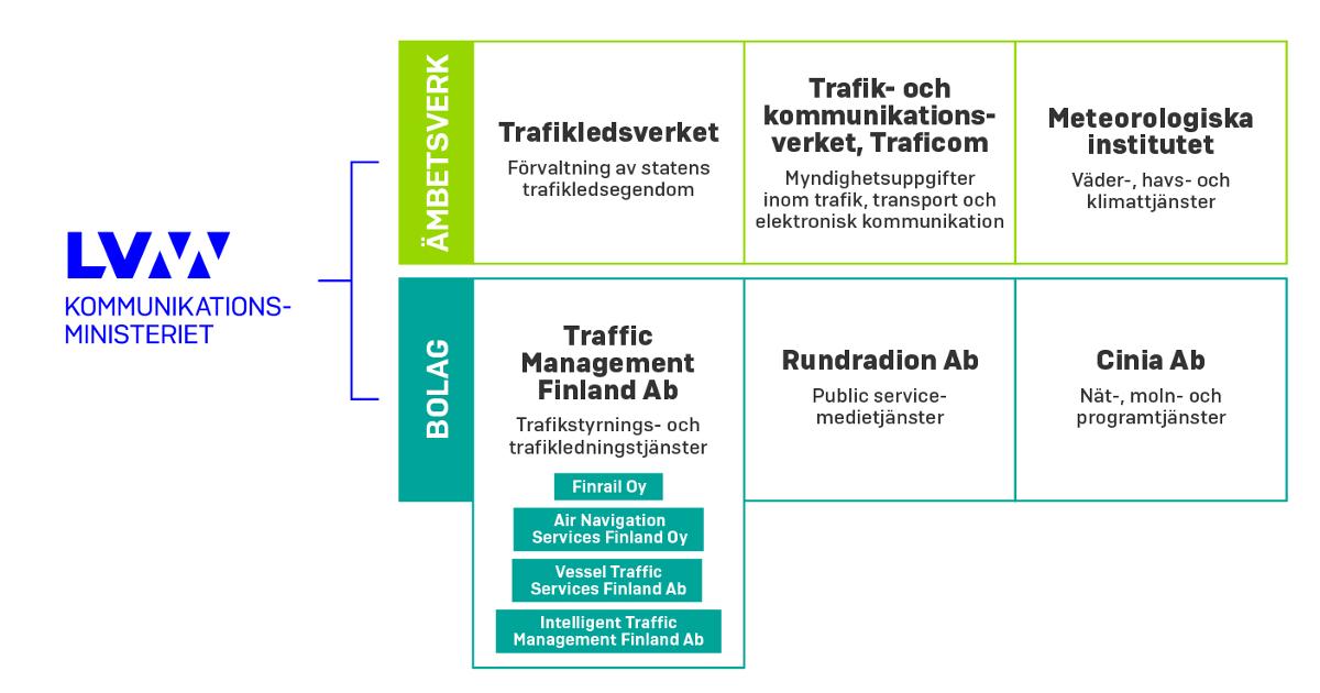 Kommunikationsministeriets förvaltningsområde omorganiseras i början av 2019. Trafiksäkerhetsverket Trafi, Kommunikationsverket samt vissa funktioner vid Trafikverket ska slås samman till det nya Transport- och kommunikationsverket (Traficom). Det nuvarande Trafikverket fortsätter sin verksamhet som Trafikledsverket.