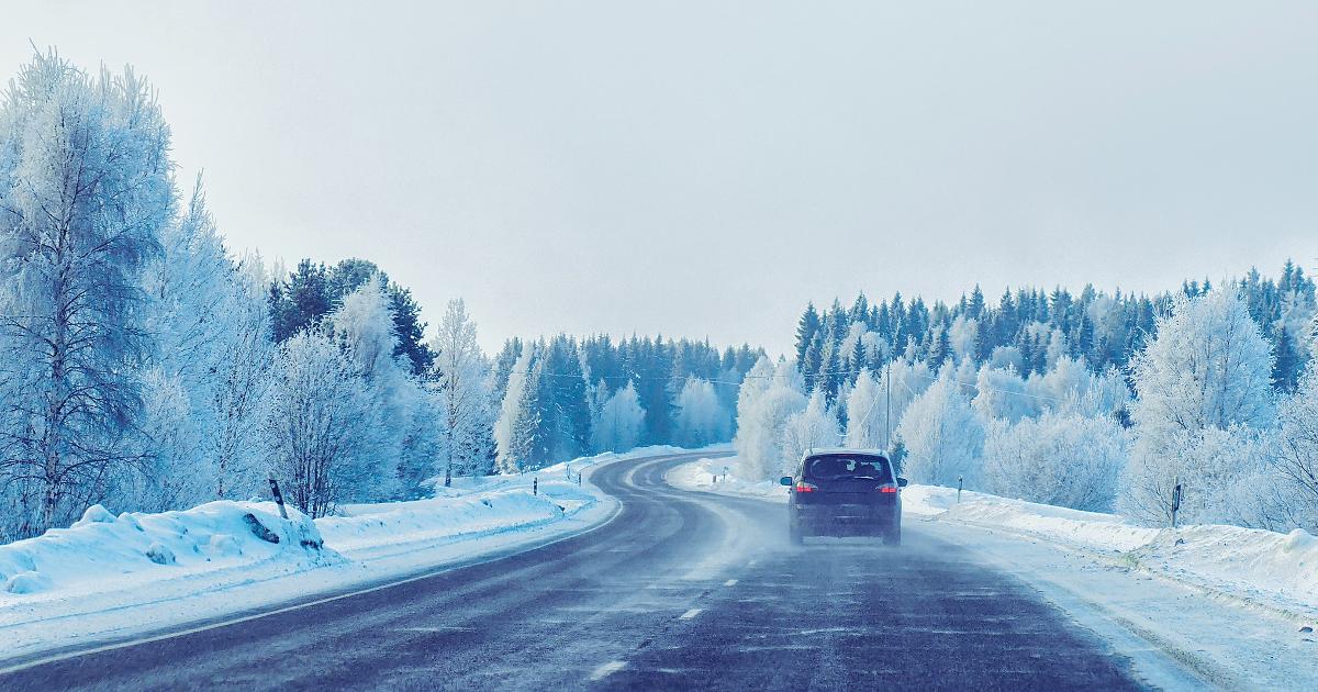 Bil på väg i Lappland på vintern (Bild: Shutterstock)